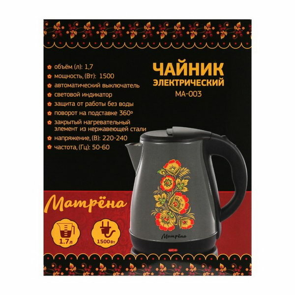 Матрёна MA-003 электрический (1,7 л) стальной серый хохлома .