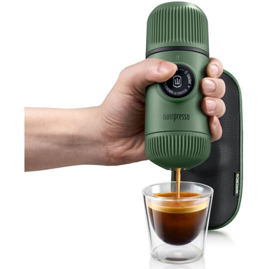 Ручная портативная кофемашина WACACO Nanopresso Elements, цвет зеленый мох.