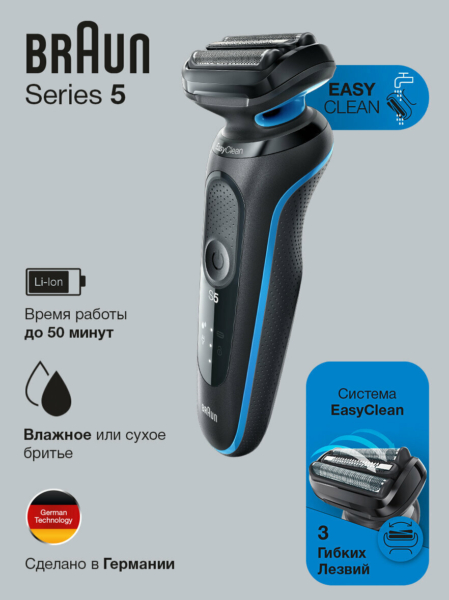 Электробритва мужская Braun Series 5 50-B1000s Blue