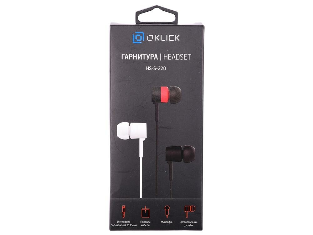 Гарнитура Oklick HS-S-220, 3.5 мм, вкладыши, черный/красный [d2b/r]