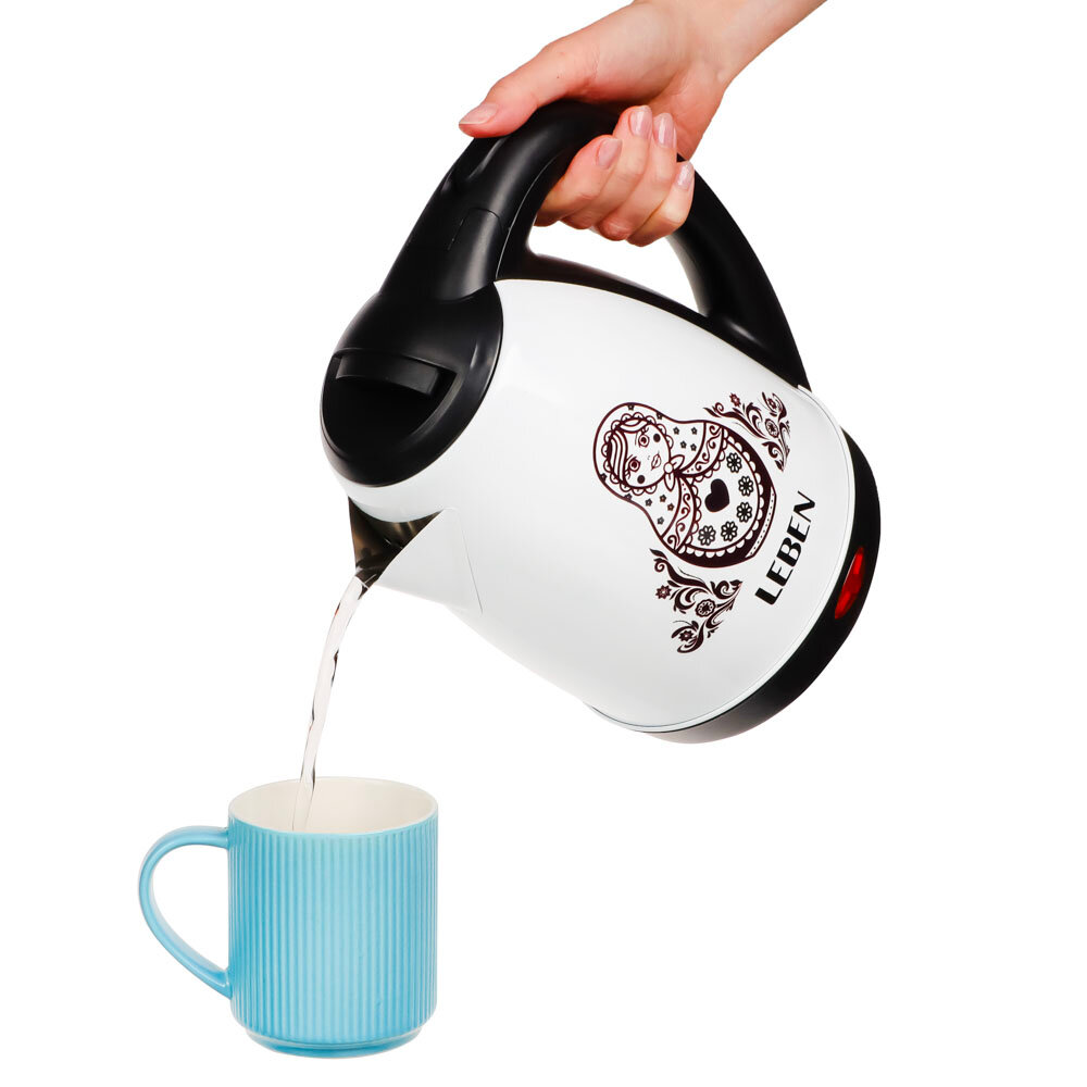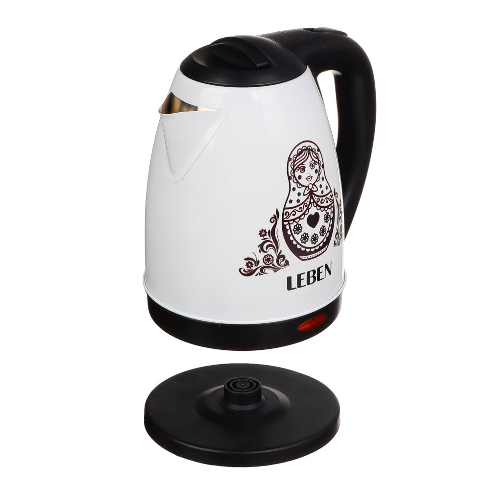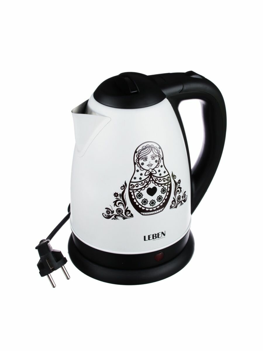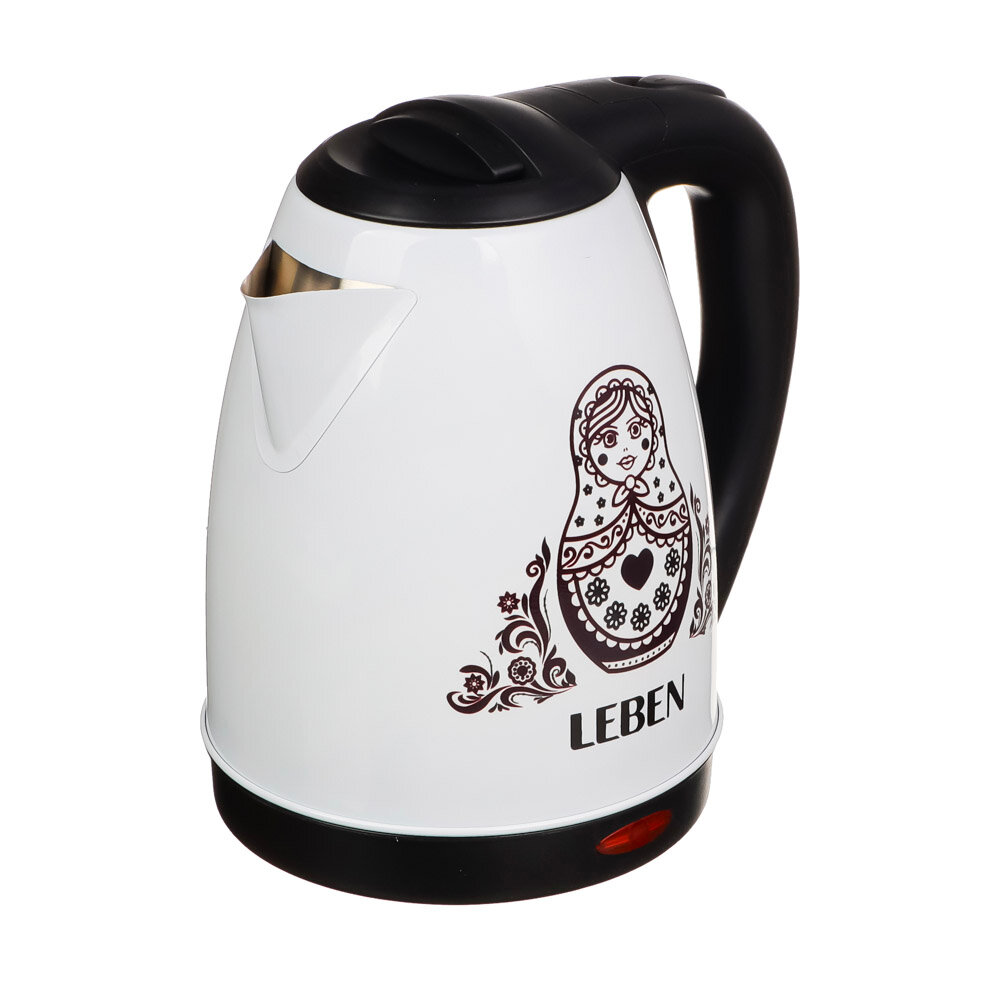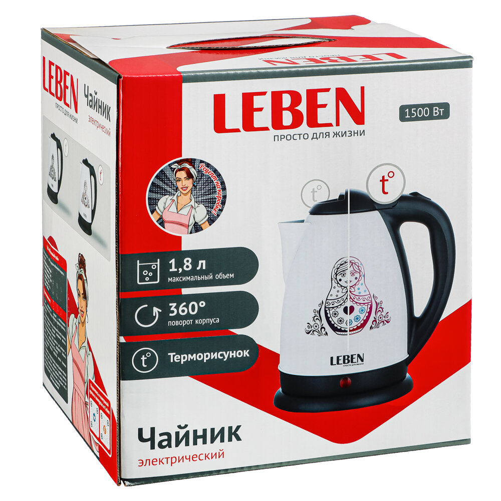 LEBEN Чайник электрический 1,8л, 1500Вт, нерж. сталь, терморисунок матрешка