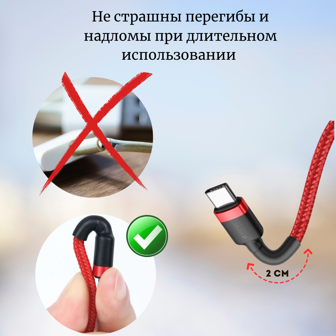 Кабель Baseus Cafule USB - USB Type-C (CATKLF-C91) 2м черный/красный