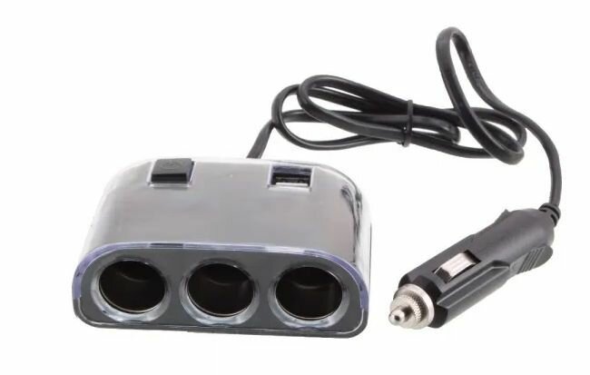 Разветвитель авто прикуривателя Olesson 1505 на 3 гнезда 12В, 2 гнезда USB, с выключателем