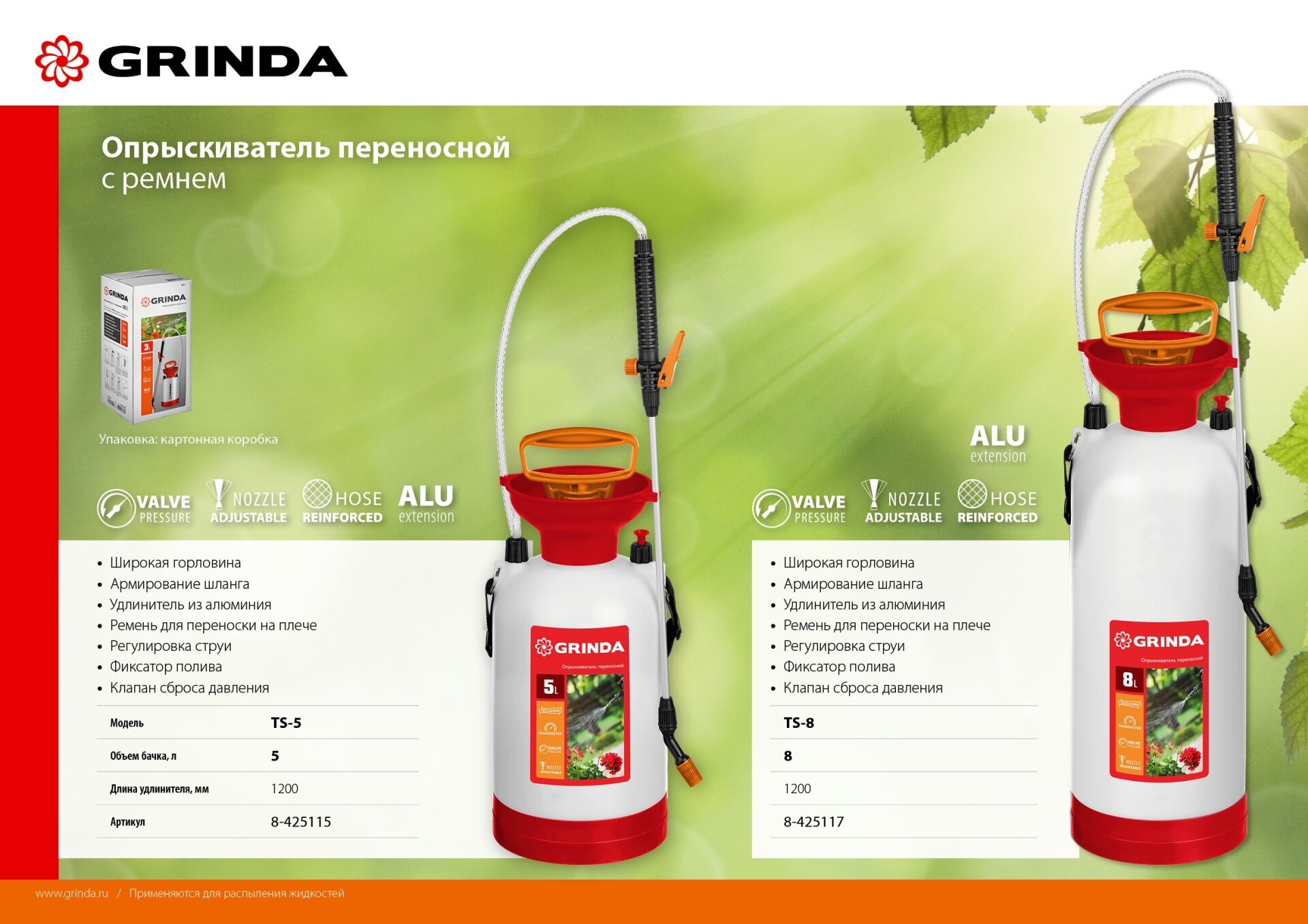 Ниже Вы можете прочитать отзывы на GRINDA TS-8, 8 л, с широкой горловиной и устойчивым днищем, переносной опрыскиватель (8-425117), ознакомится с подробными характеристиками, посмотреть интересные обзоры и фотографии на GRINDA TS-8, 8 л, с широкой горловиной и устойчивым днищем, переносной опрыскиватель (8-425117).