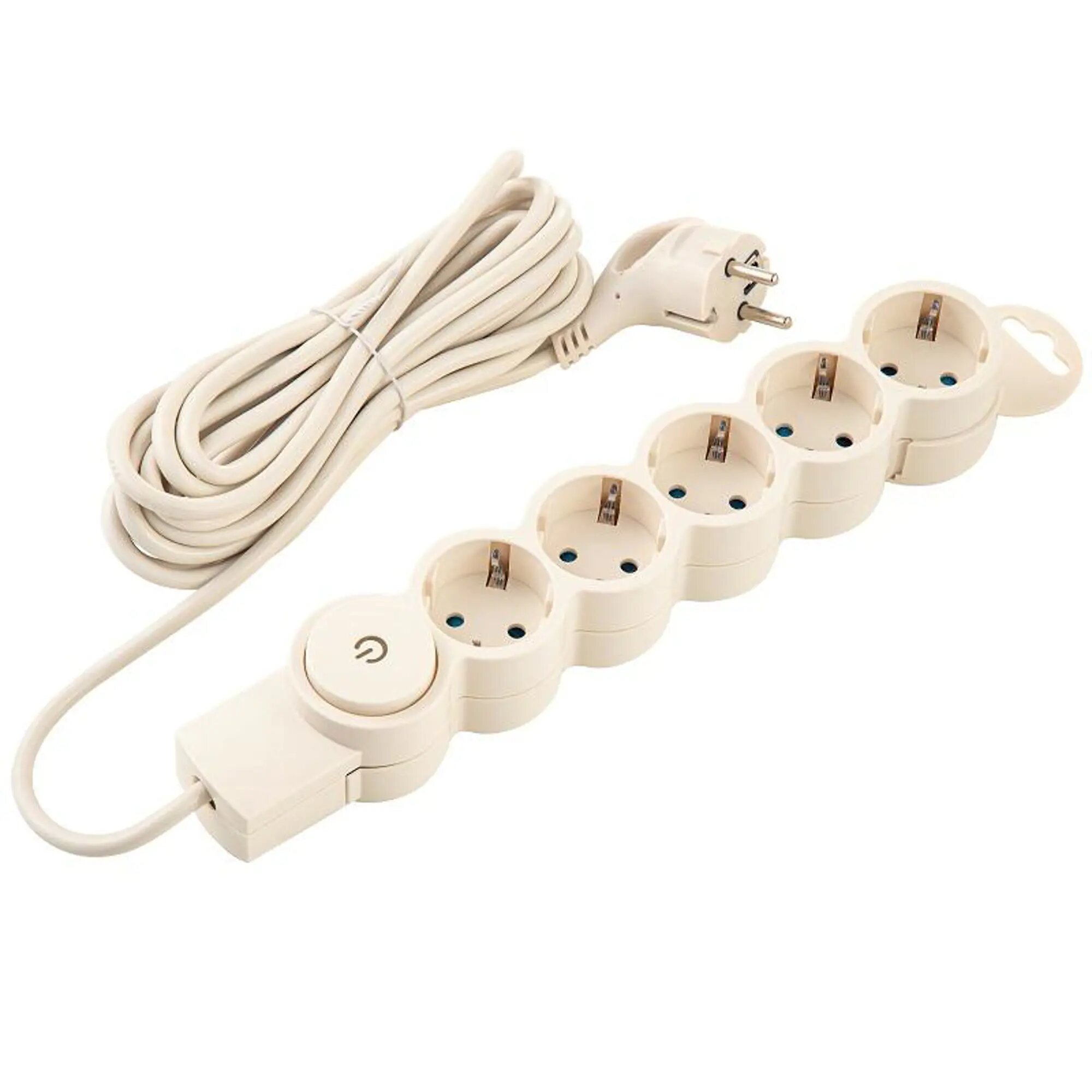 Сетевой фильтр düwi 5 гнезд, с выключателем, с заземлением, 10А/2,2кВт, 5м, слоновая кость