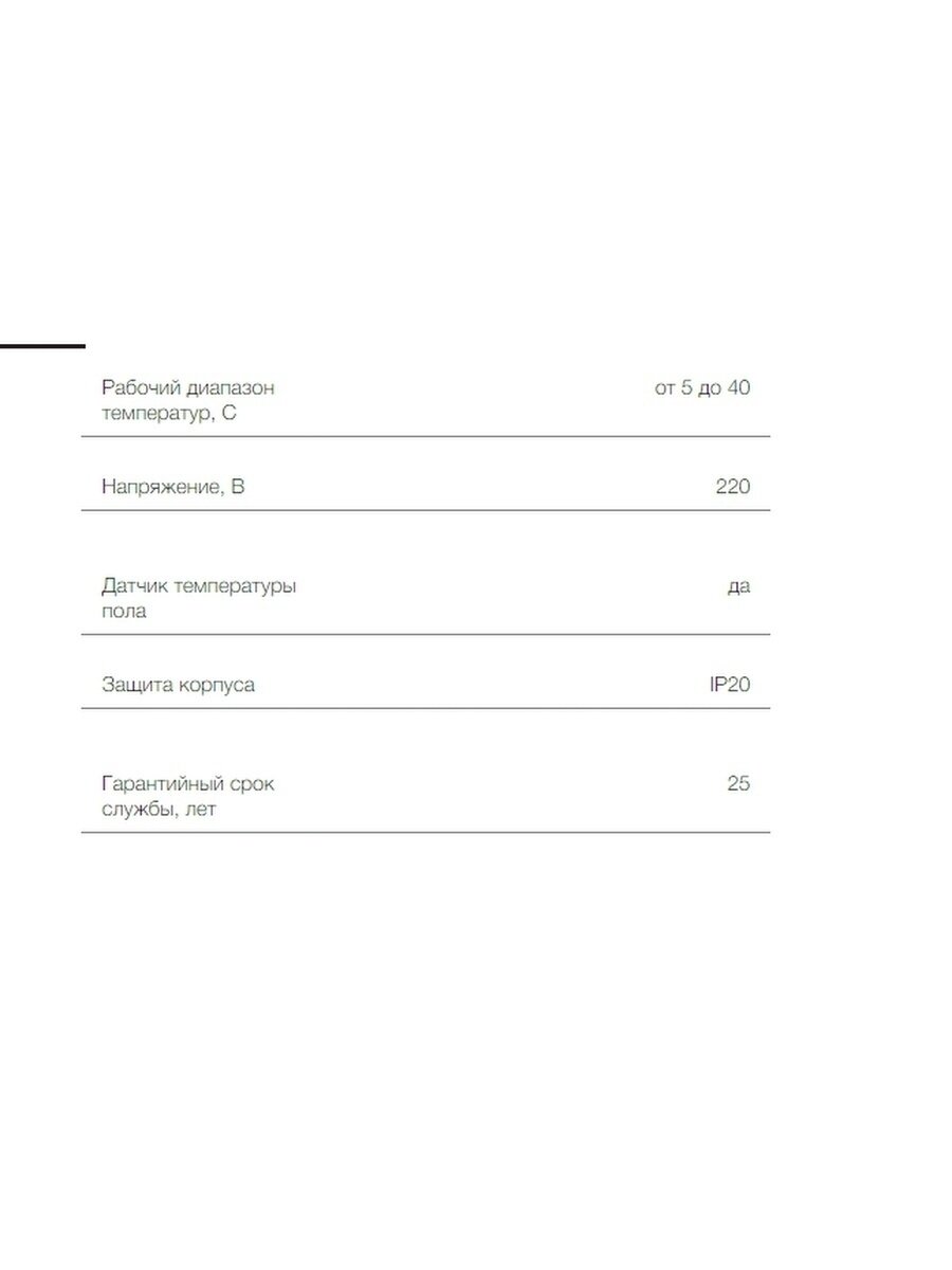 | Подходит для электрического теплого пола | есть |