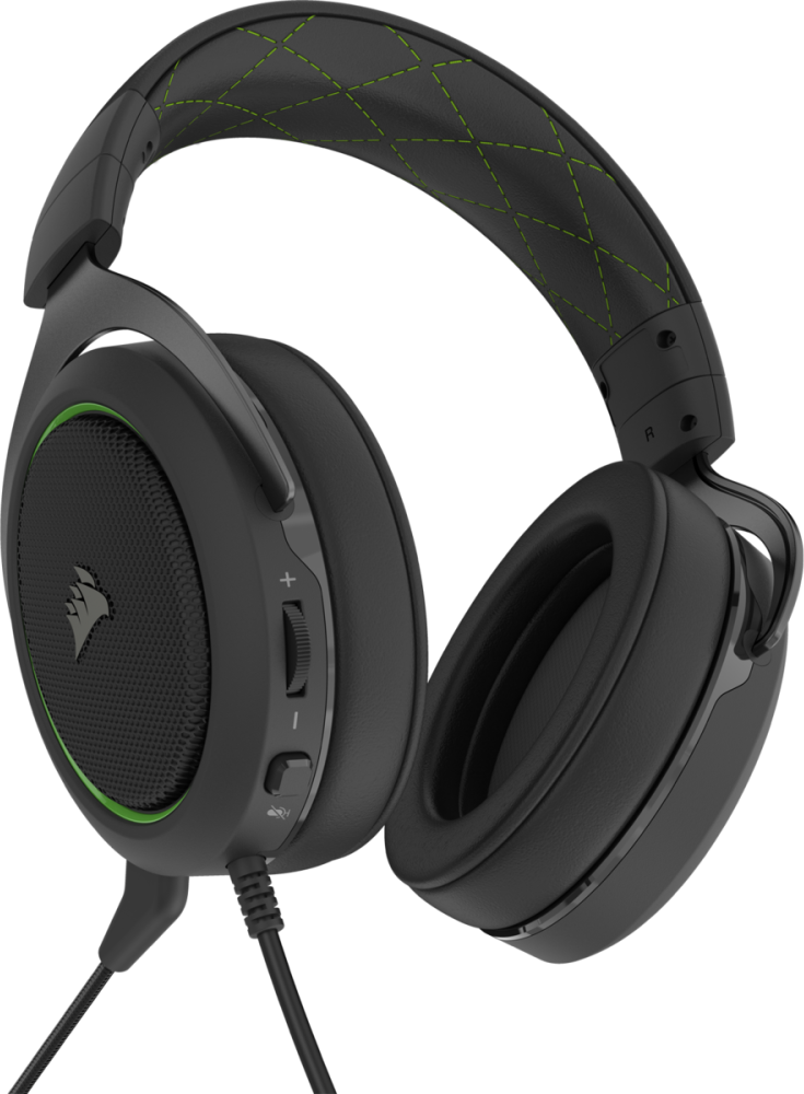 Купить Гарнитура игровая Corsair HS50 Pro Stereo, для компьютера и игровых консолей, мониторные, черный матовый / зеленый [ca-9011216-eu]