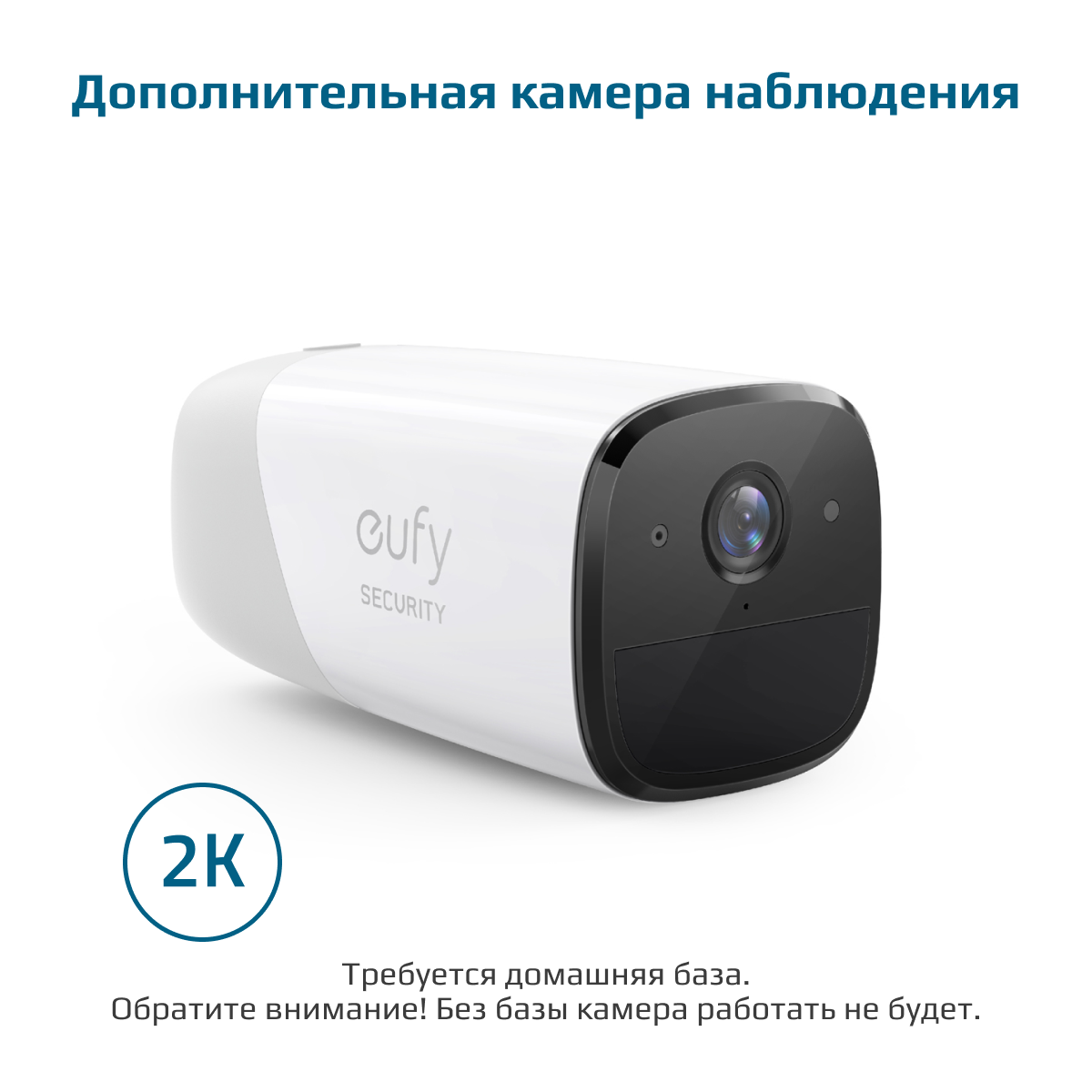 | Дополнительная информация | дополнительная камера, для работы требуется eufyCam HomeBase 2; дальность ИК-подсветки 7.5 м; поддержка Android и Apple iOS |
