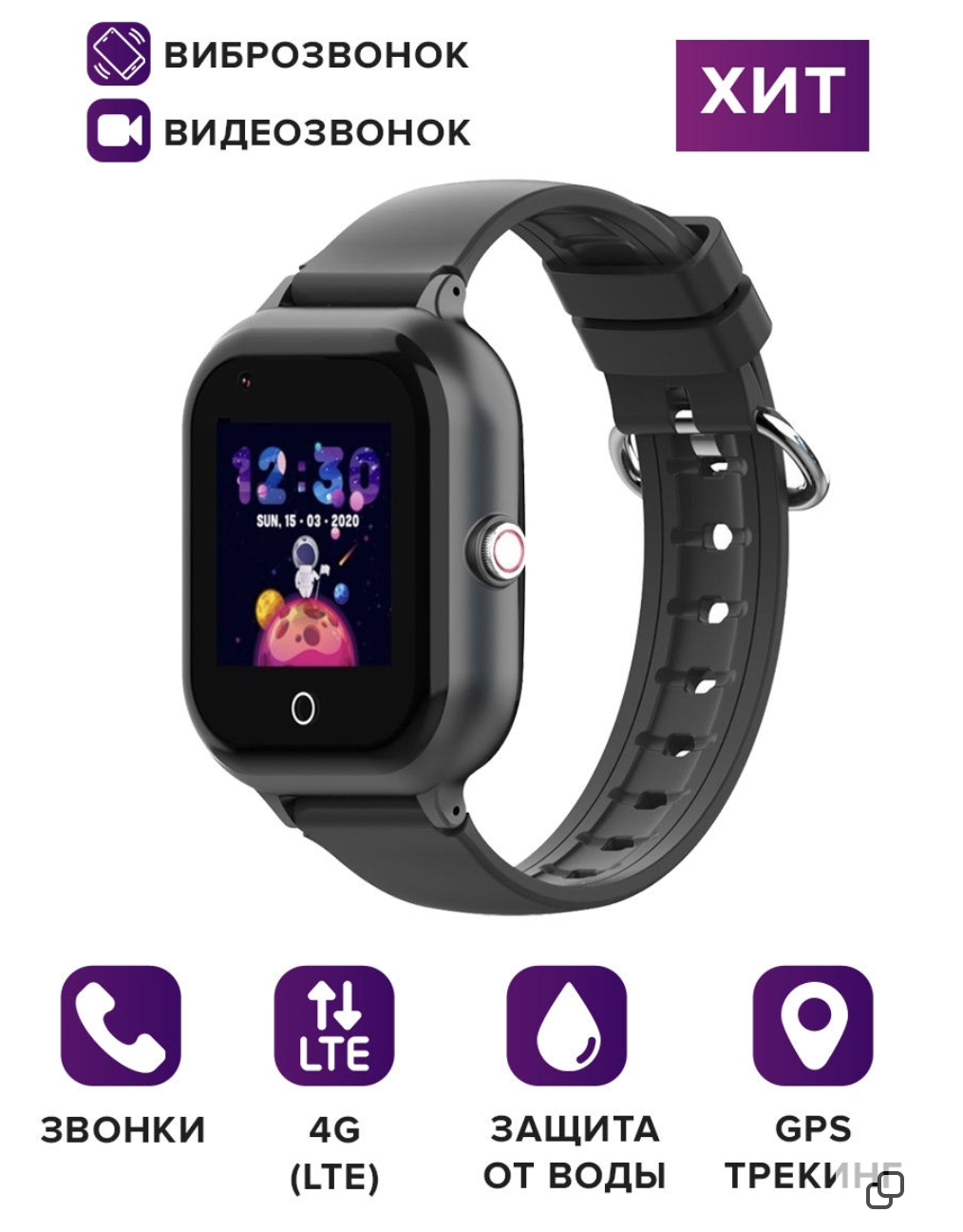 Детские часы с видеокамерой KT24 4G черные