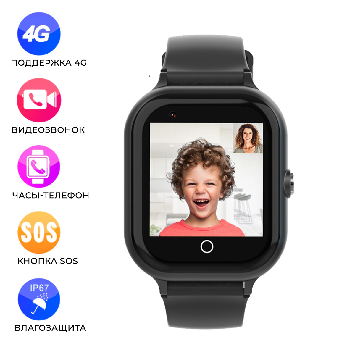 Умные часы для детей Wonlex Smart Baby Watch KT24 4G (LTE) с сим картой, функцией телефона, GPS трекером, камерой, кнопкой SOS, видеозвонком. Черный