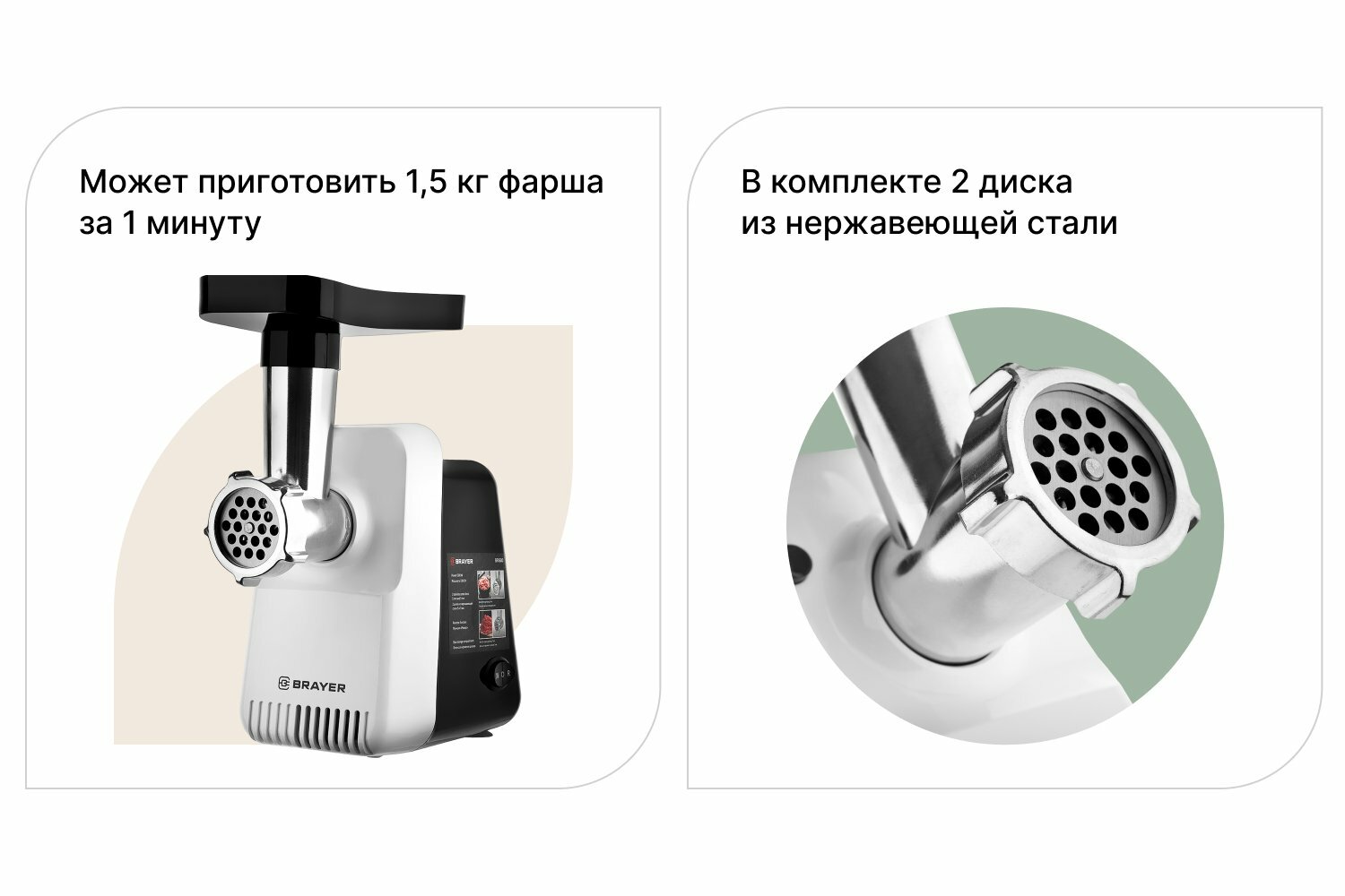 Купить Мясорубка BRAYER BR1600, белый/черный