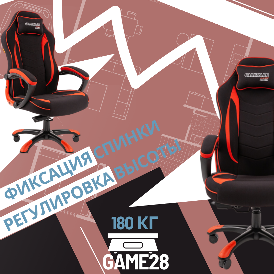 Компьютерное кресло Chairman GAME 28 игровое, обивка: текстиль, цвет: красный/черный