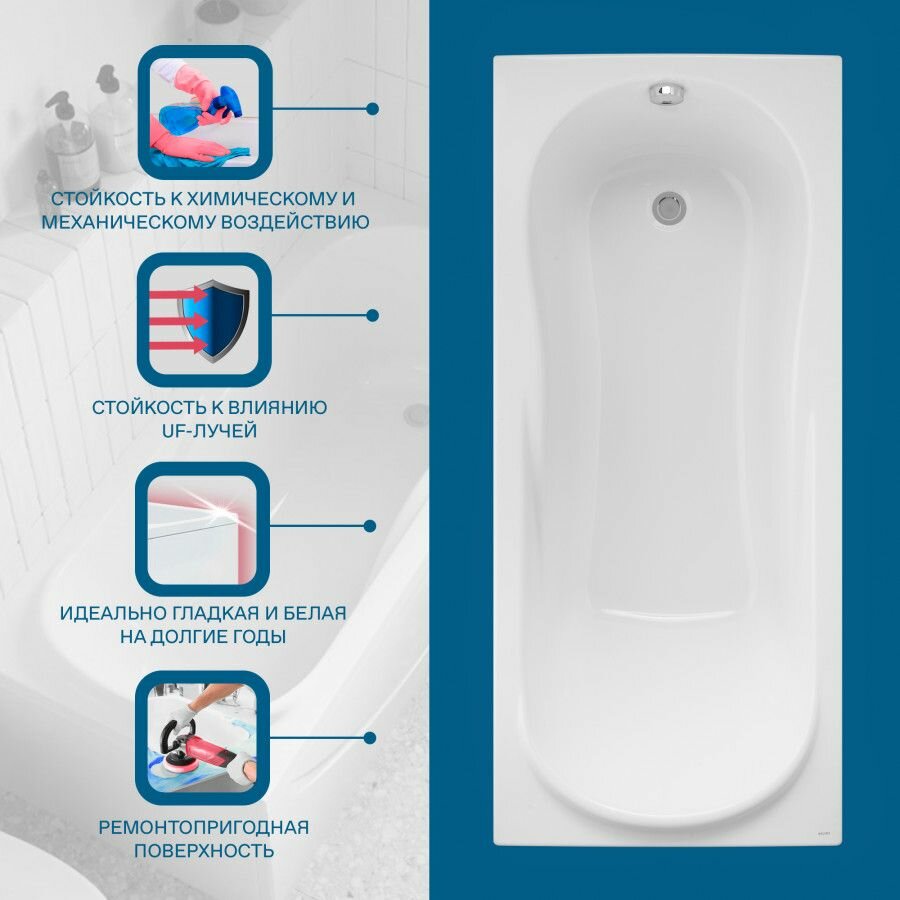 Santek 1WH302383 Каледония Ванна акриловая 150х75 см, белая
