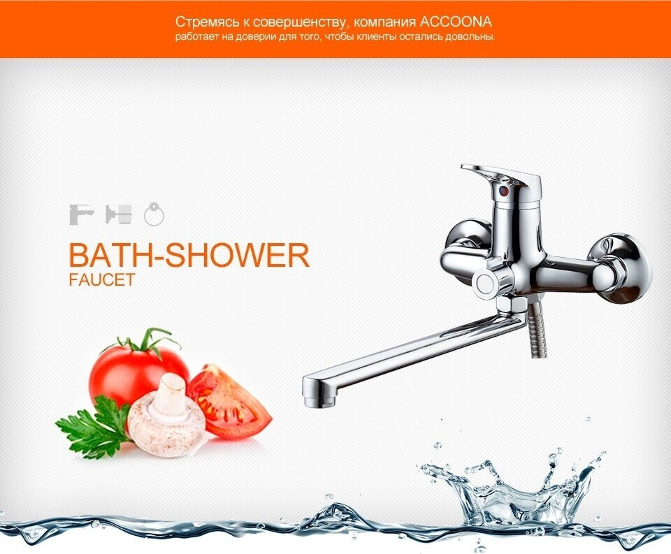 Смеситель для ванны с душевой лейкой Accoona A7150, хром интересное: