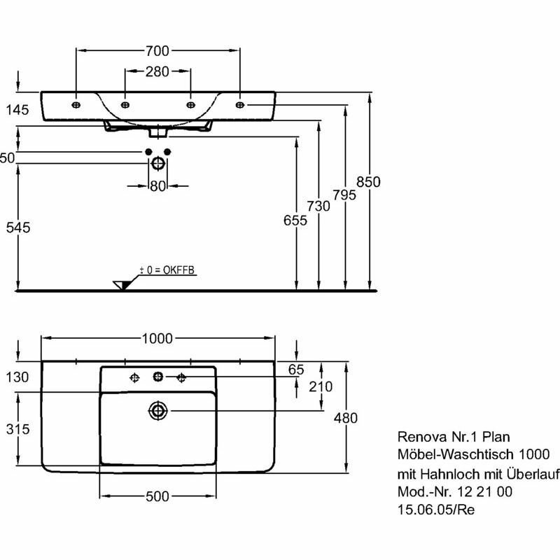 Geberit 122100000 Renova Plan Раковина мебельная 100х48 см, белая