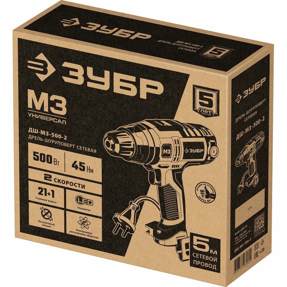 Дрель-шуруповерт Зубр ДШ-М3-500-2, сетевой