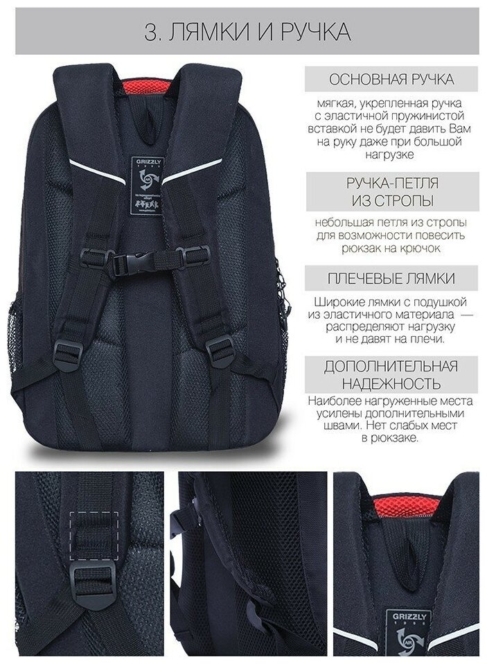 Рюкзак для мальчиков (GRIZZLY) арт RU-132-2/2 черный - красный 31х42х22 см