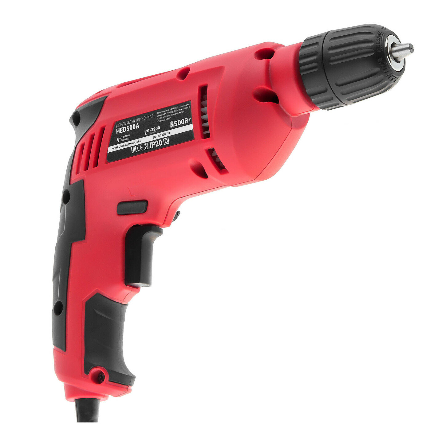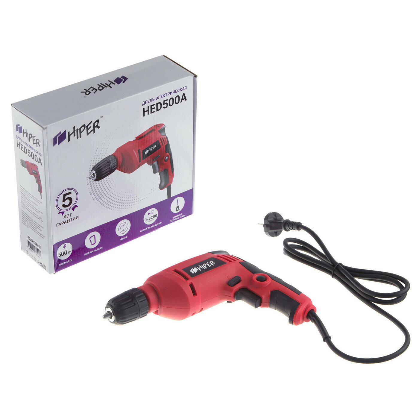 HIPER Дрель электрическая HIPER HED500A (500Вт, 0-3200 об/мин, быстрозажимной патрон 10мм, коробка)