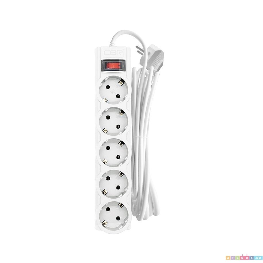 CBR Сетевой фильтр CSF 2505-1.8 White CB, 5 евророзеток, длина кабеля 1,8 метра, цвет белый (коробка)