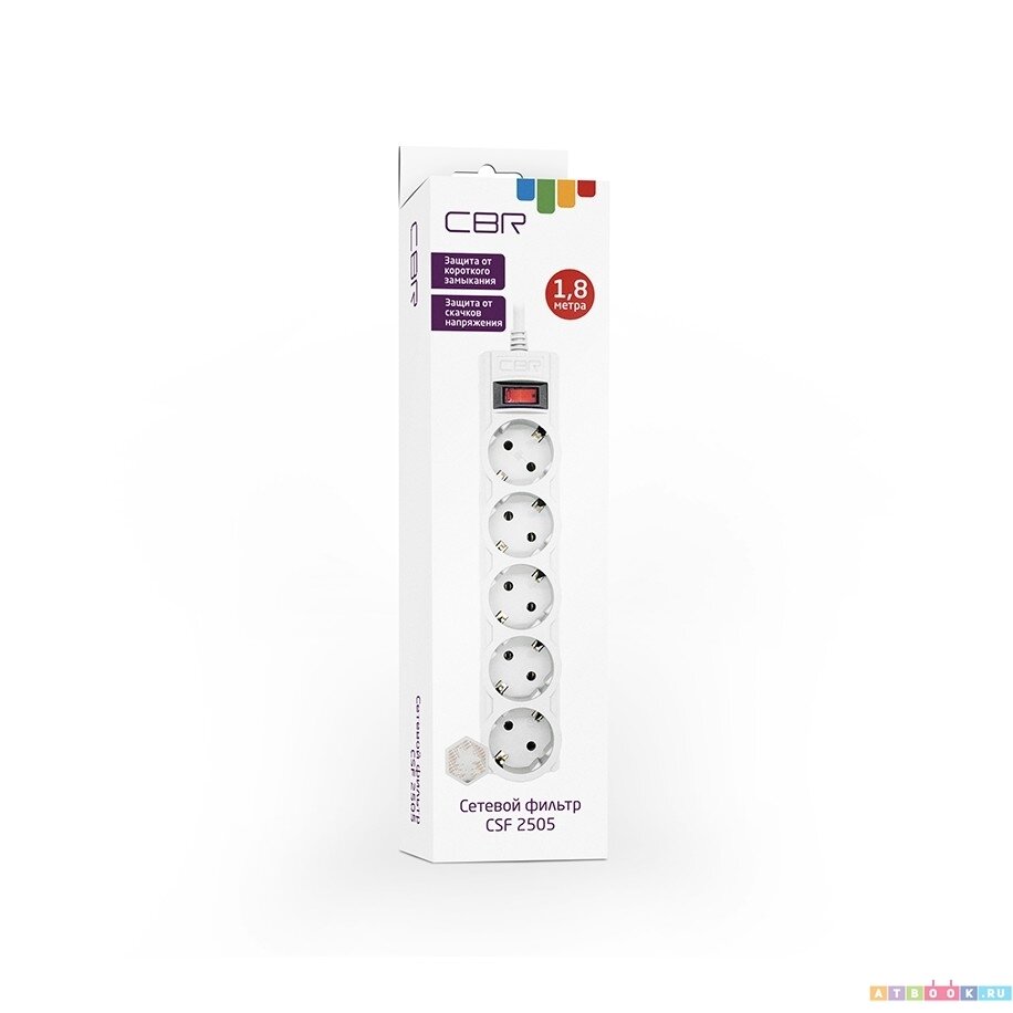 Cbr сбр сетевые фильтры Сетевой фильтр CSF 2505-1.8 White CB, 5 евророзеток, длина кабеля 1,8 метра, цвет белый коробка