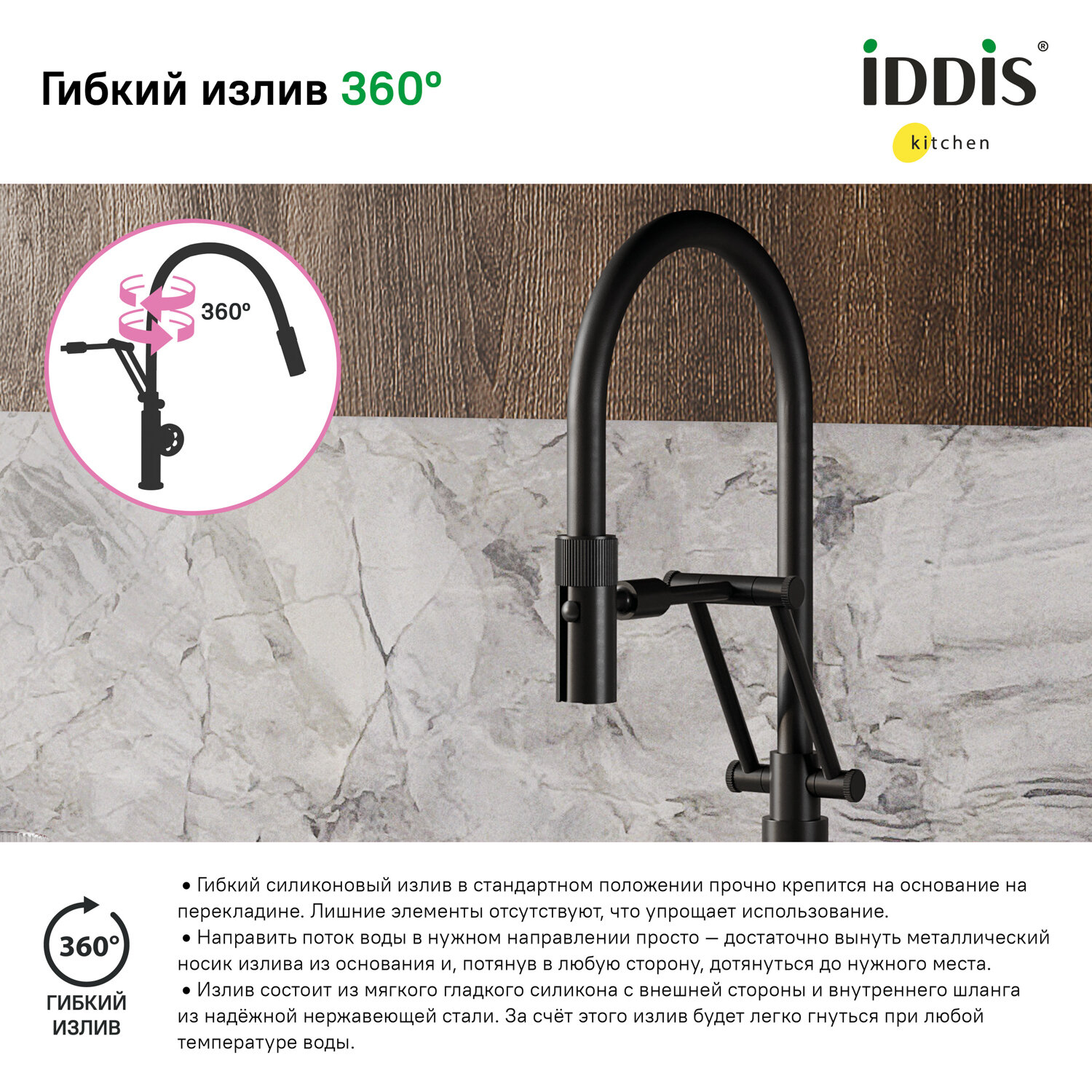 Смеситель для кухни с гибким изливом Iddis Grange GRABLFLi05, черный матовый