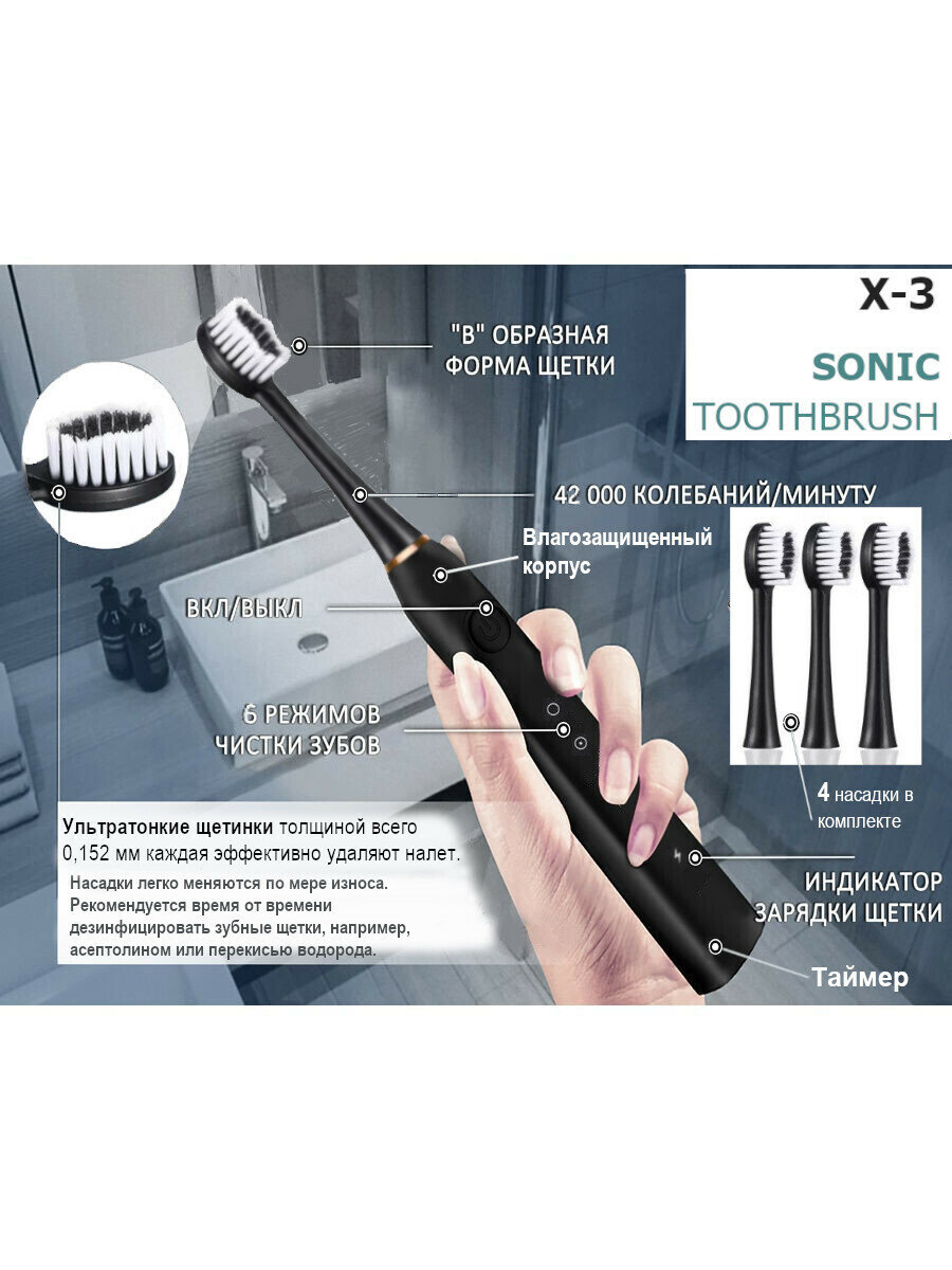 Электрическая зубная щетка Sonic X-3. Электрическая ультразвуковая зубная щетка .