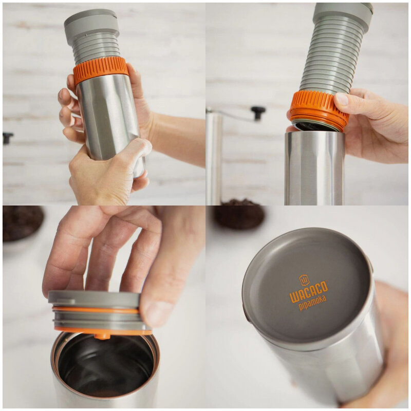 Портативная кофемашина WACACO Pipamoka, дорожная кофемашина, маленькая ручная походная кофеварка, вакуумная печать все в одном , термокружка из нержавеющей стали, быстрое извлечение, 10 жидких унций