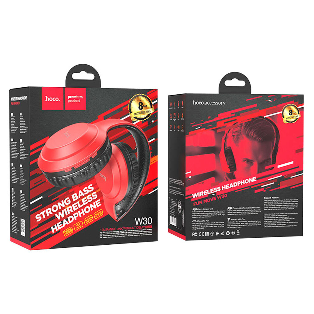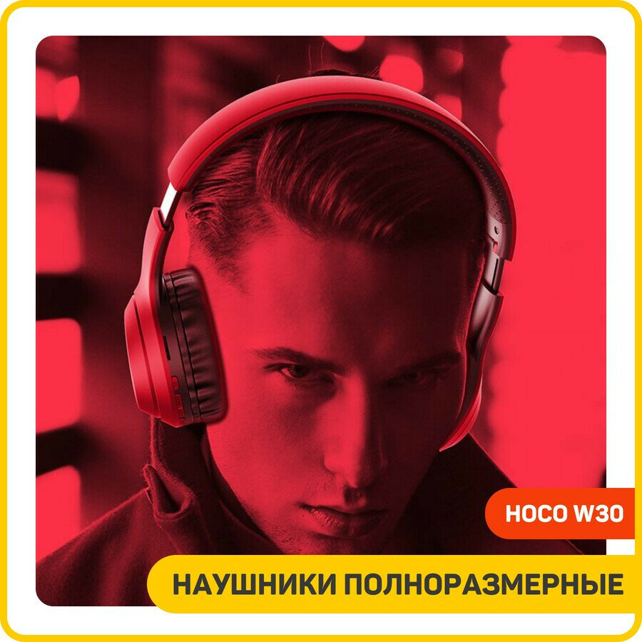 Bluetooth-наушники полноразмерные Hoco W30, красно-черные, 1 шт