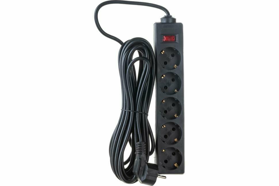 Сетевой фильтр ExeGate Sp-5-7b 5 евро с заземлением, 7м, выключатель с подсветкой, черный 279179 .