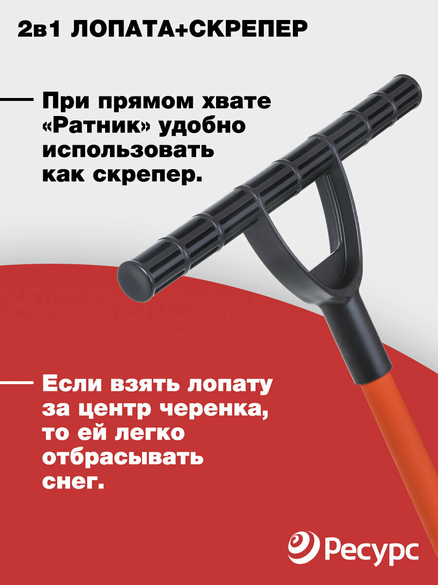 Лопата скрепер Ратник для снега с Т-образной пластиковой ручкой и ручкой силы .