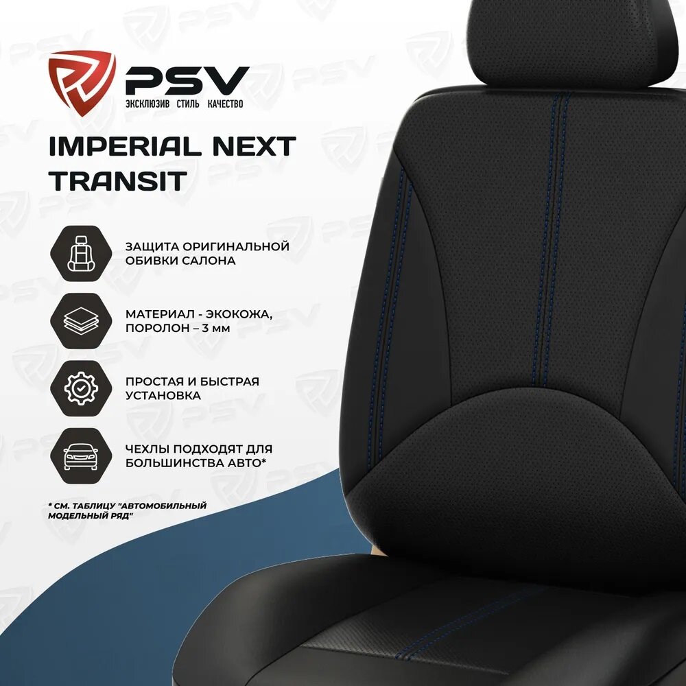 Купить Чехлы для коммерческого транспорта универсальные PSV Imperial Next TRANSIT (Черный/отстрочка синяя), экокожа