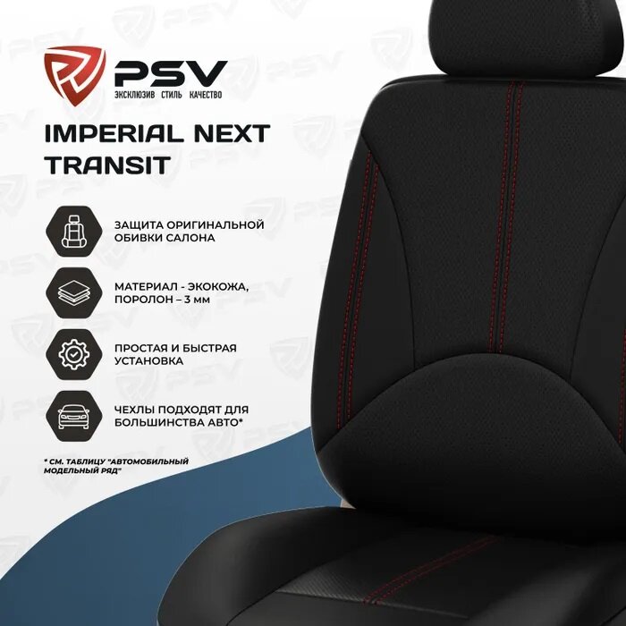 Купить Чехлы для коммерческого транспорта универсальные PSV Imperial Next TRANSIT (Черный/отстрочка красная), экокожа