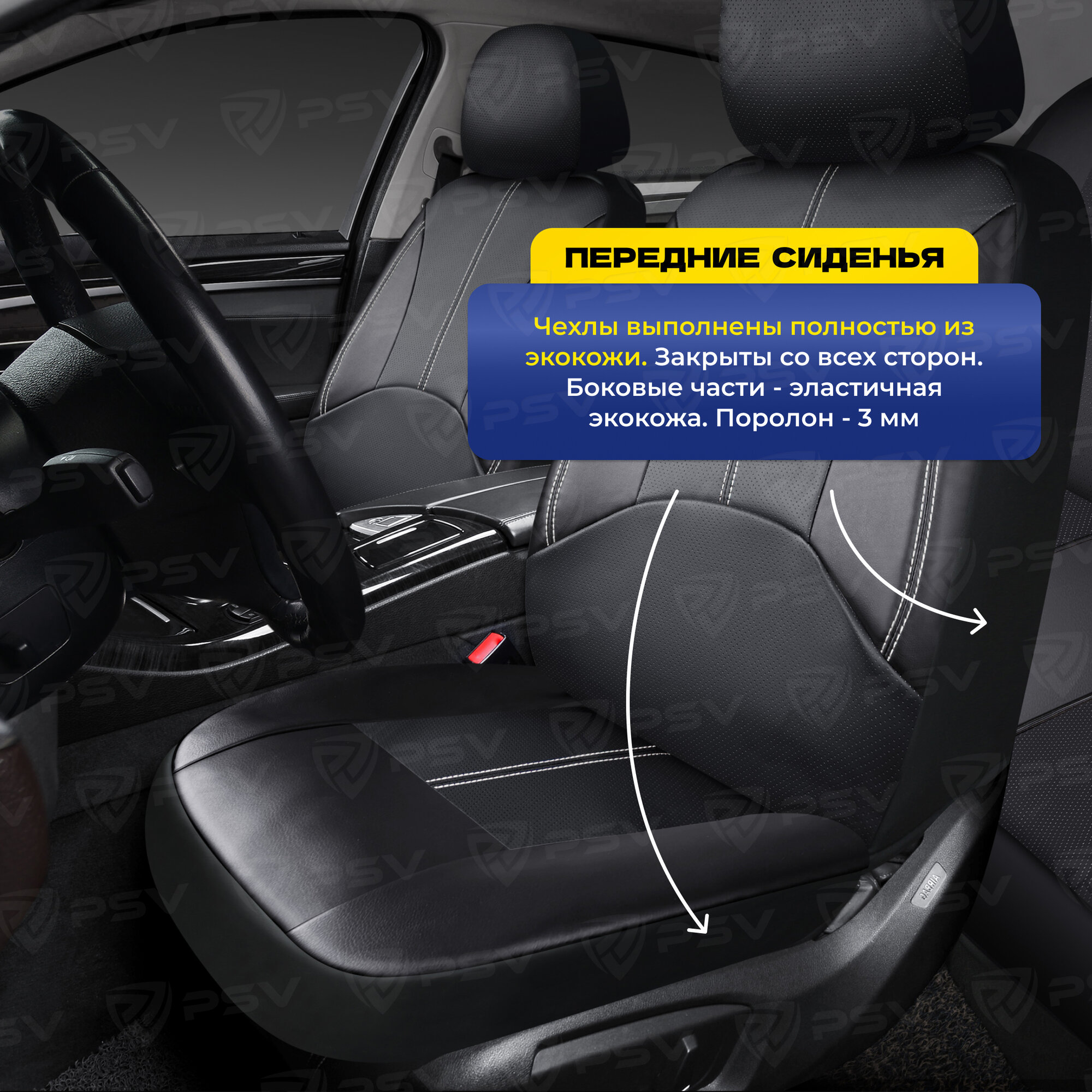 Чехлы "psv" imperial next 2 front (черный/отстрочка белая), l, кожзам