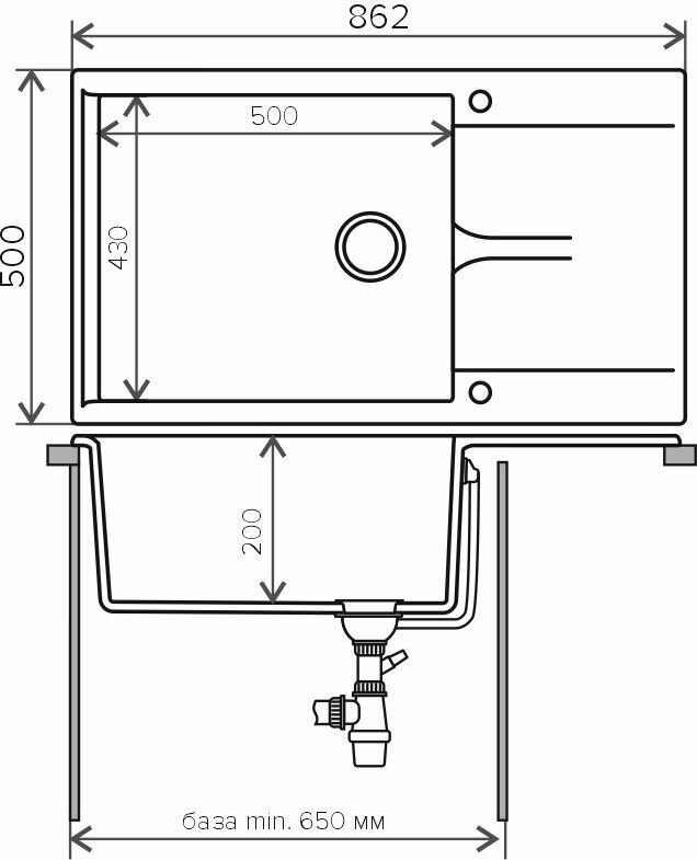 Накладная кухонная мойка 86.2 см, Polygran Gals-862, матовое черный 16