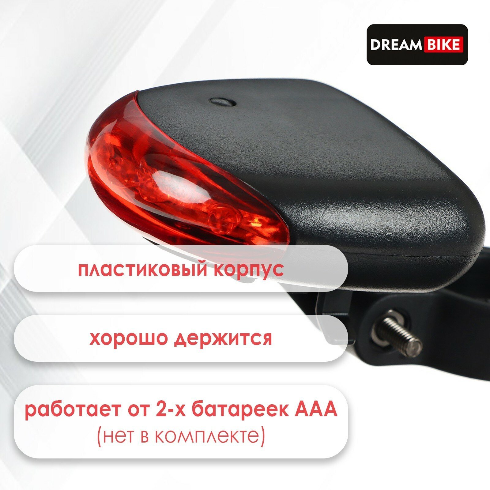 Фонарь велосипедный задний Dream Bike, JY-008B, 5 диодов, 3 режима, 1 шт