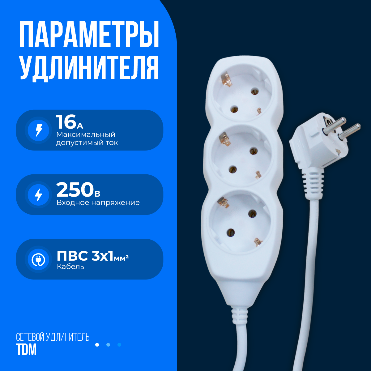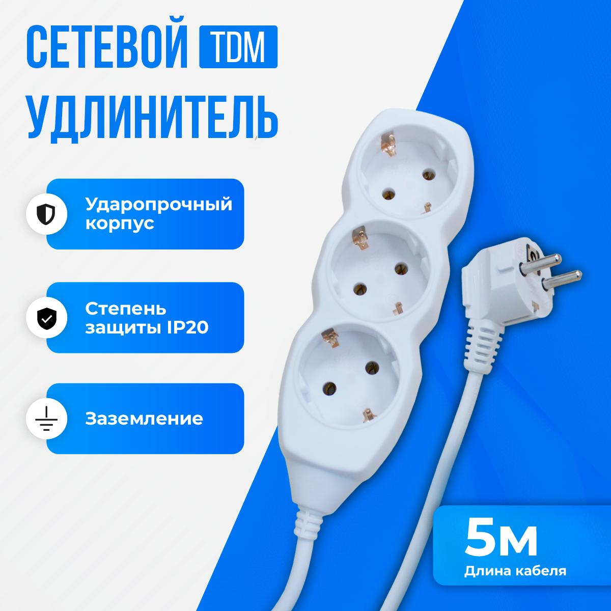 Удлинитель электрический У03 TDM 3 гнезда с заземлением, кабель 5 м, белый интересное: