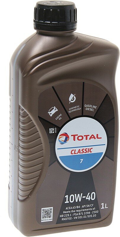 Масло моторное полусинтетическое 1 л TOTAL CLASSIC 7 10W40 A3, B4 API SN, CF Допуски OEMMB 229.1, PSA B71 2300, PSA B71 2294, RN 0700, VW 501 01, VW 505 00