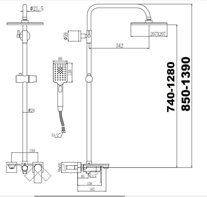 | Высота стойки для душа | 1189 мм / 1189 мм |