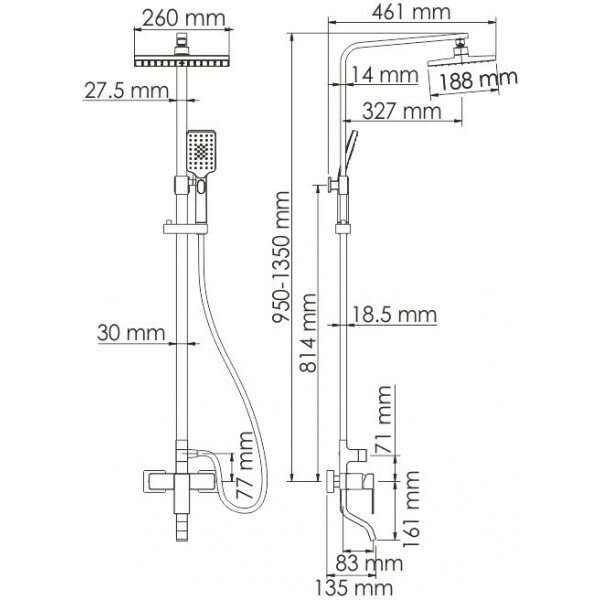 | Высота стойки для душа | 1350 мм |