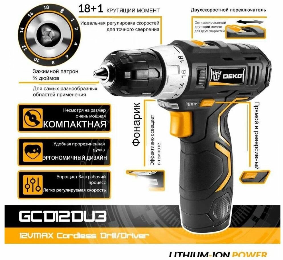 Дрель-шуруповерт Deko GCD12DU3 (063-4133)