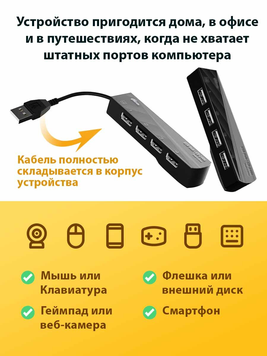 Купить USB-концентратор Ritmix CR-2406, разъемов: 4, 10 см, черный