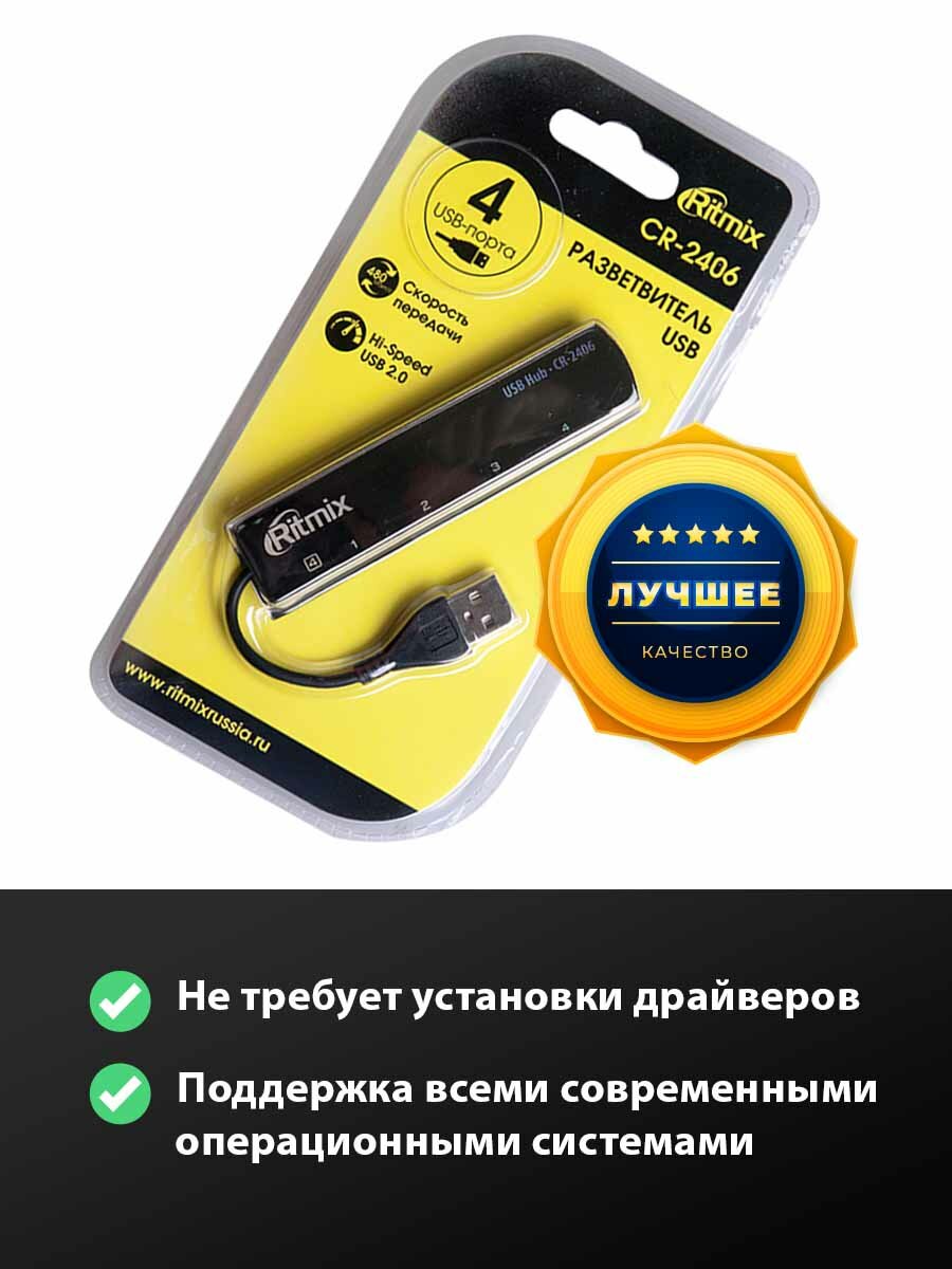 Разветвитель USB (usb хаб) Ritmix CR-2406 black .