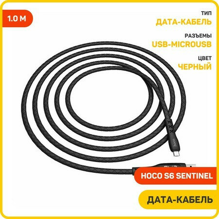 Кабель Hoco S6 Sentinel USB - MicroUSB, 1.2 м, черный