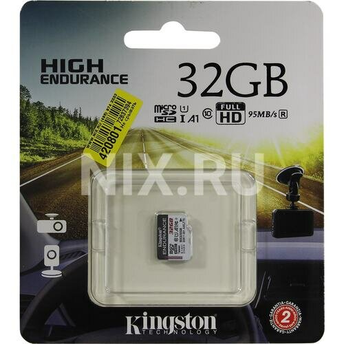 Купить Карта памяти microSDHC UHS-I U1 Kingston High Endurance 32 ГБ, 95 МБ/с, Class 10, SDCE/32GB, 1 шт., без адаптера