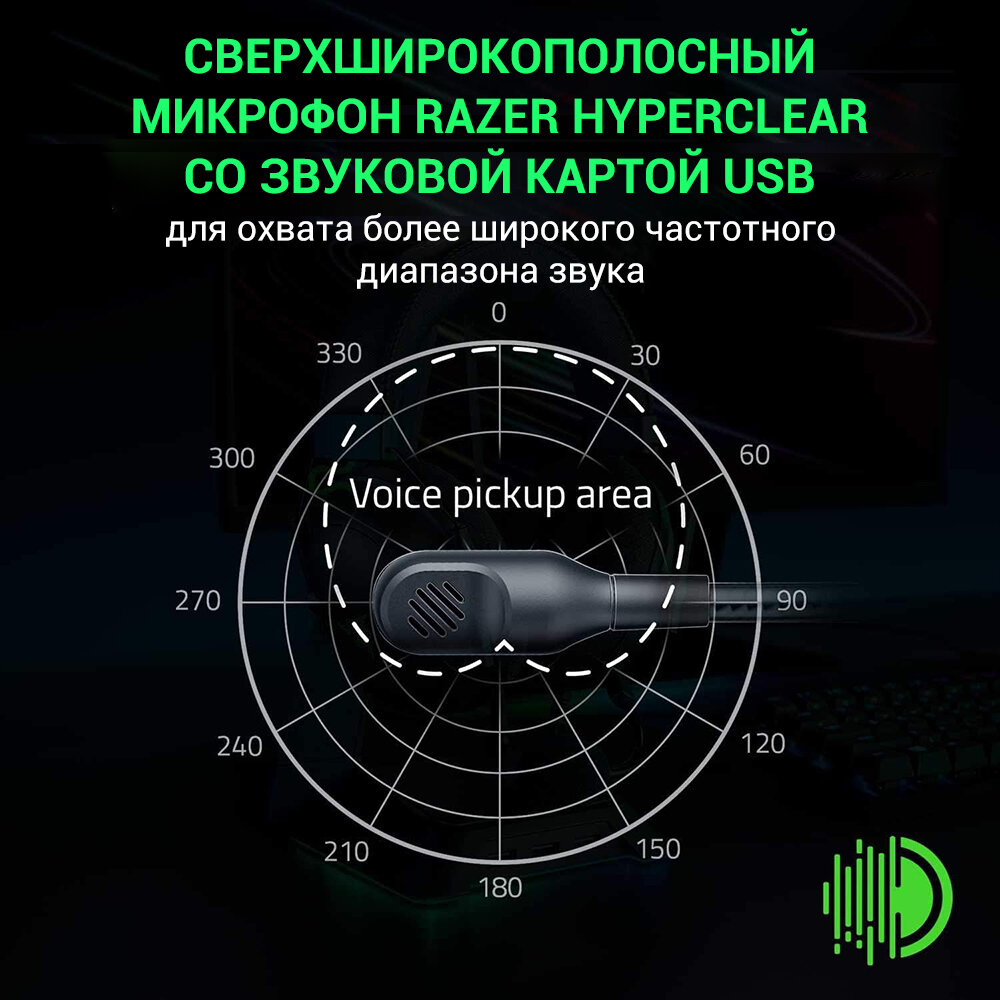 Гарнитура Razer Blackshark V2 + USB Sound Card, черный, зеленый