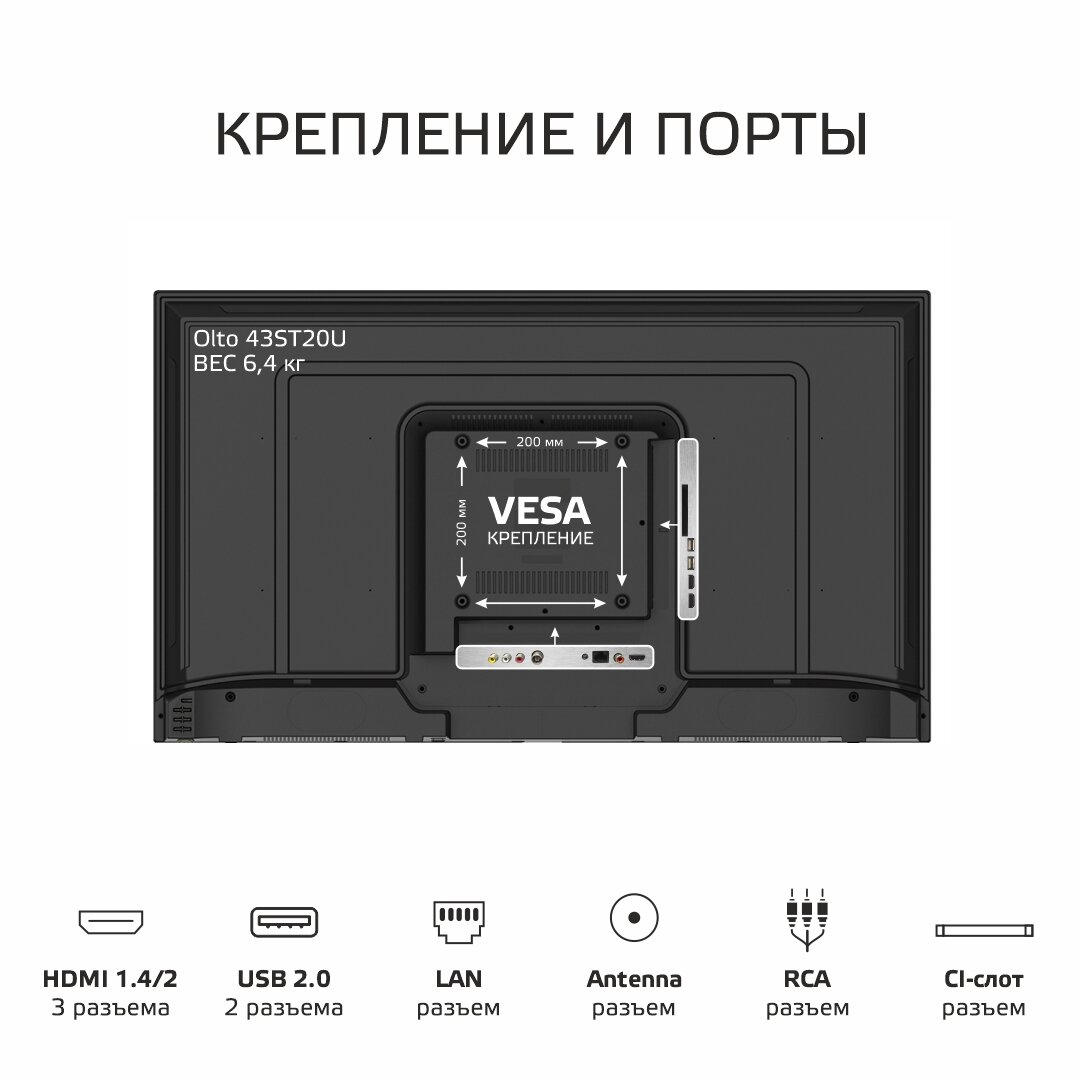 Телевизор OLTO 43ST20U, 4K Ultra HD, черный