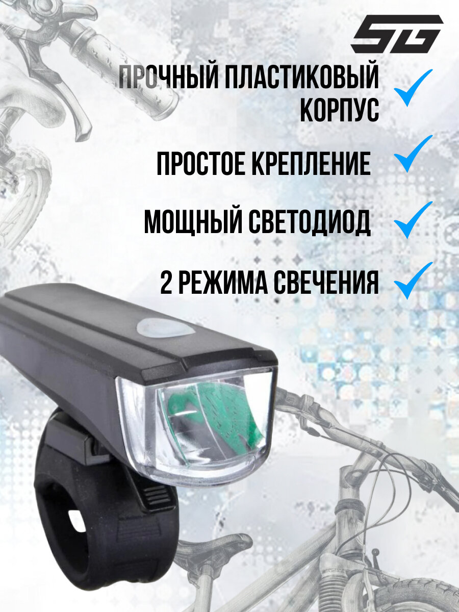 Фонарь велосипедный Stg,jy7036, передний, резин. Хомут.