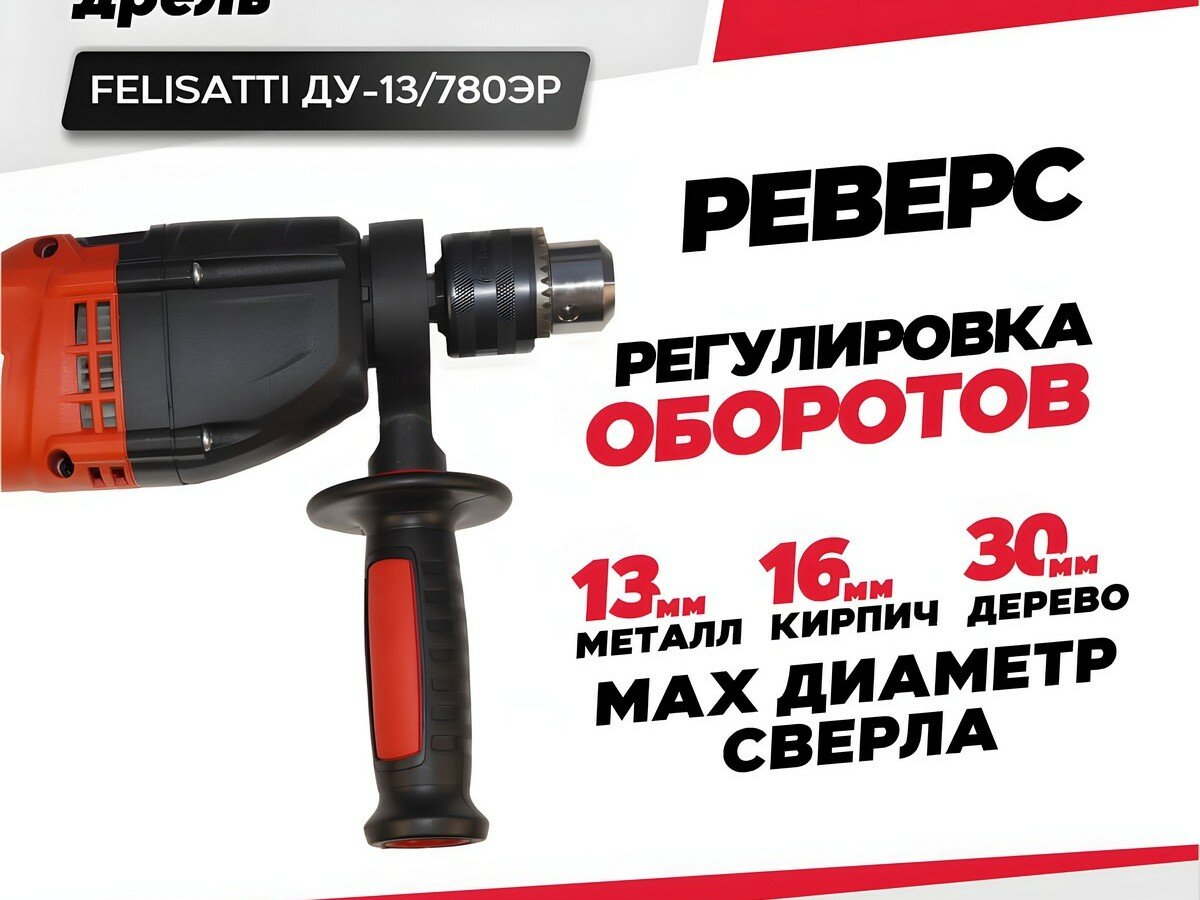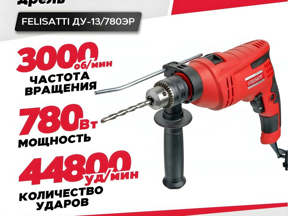 СохранитьДрель ударная FELISATTI ДУ-13/780ЭР / электродрель сетевая профессиональная (780 Вт, 44800 уд/мин, реверс) интересное: