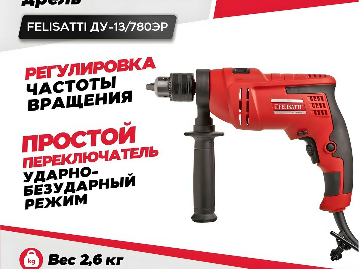 Ударная дрель Felisatti ДУ-13/780ЭР, 780 Вт красный/черный
