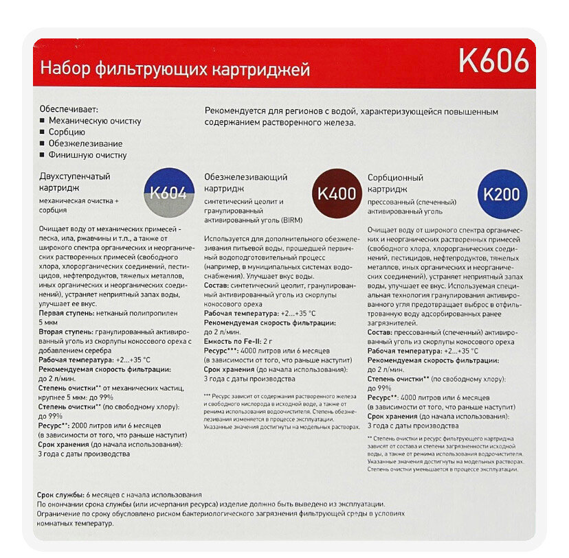Набор картриджей (к604, К400, К200) для EU312 Prio Новая вода К 606 .